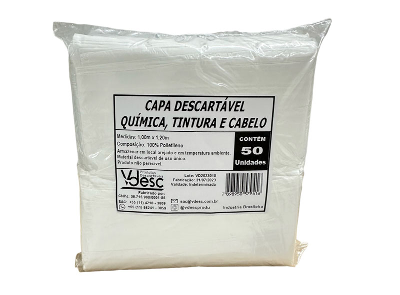 Garanta praticidade, higiene e proteção com a Capa Descartável, ideal para procedimentos de química, tintura e corte de cabelo. Produzida em material leve, resistente e impermeável, ela protege a roupa do cliente contra respingos de tinturas, produtos químicos e cabelos cortados, oferecendo mais segurança tanto para o profissional quanto para o cliente.