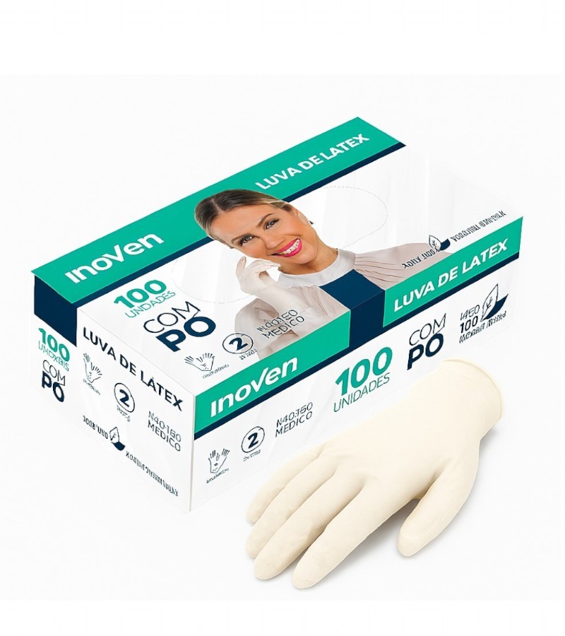 Composição: 100% borracha natural látex com pó (amido de milho).