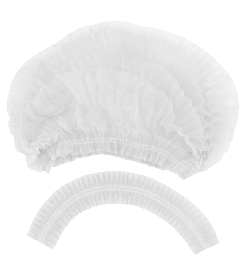 Toucas de proteção capilar sanfonadas em formato de tiras. Fabricadas em tecido não tecido, com elásticos duplo e atóxicos. Material descartável e de uso único.