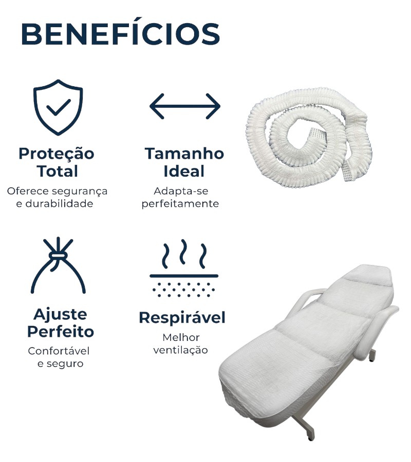Ideal para clínicas médicas, estéticas, fisioterapia, massagem e ambientes onde a higiene é prioridade absoluta. Sua composição de TNT (Tecido Não Tecido) proporciona toque confortável e macio, além de excelente resistência.
