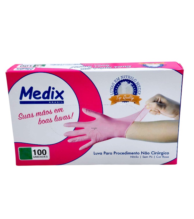 Luva Descartável Nitrílica Rosa sem Pó Medix – caixa com 100 unidades